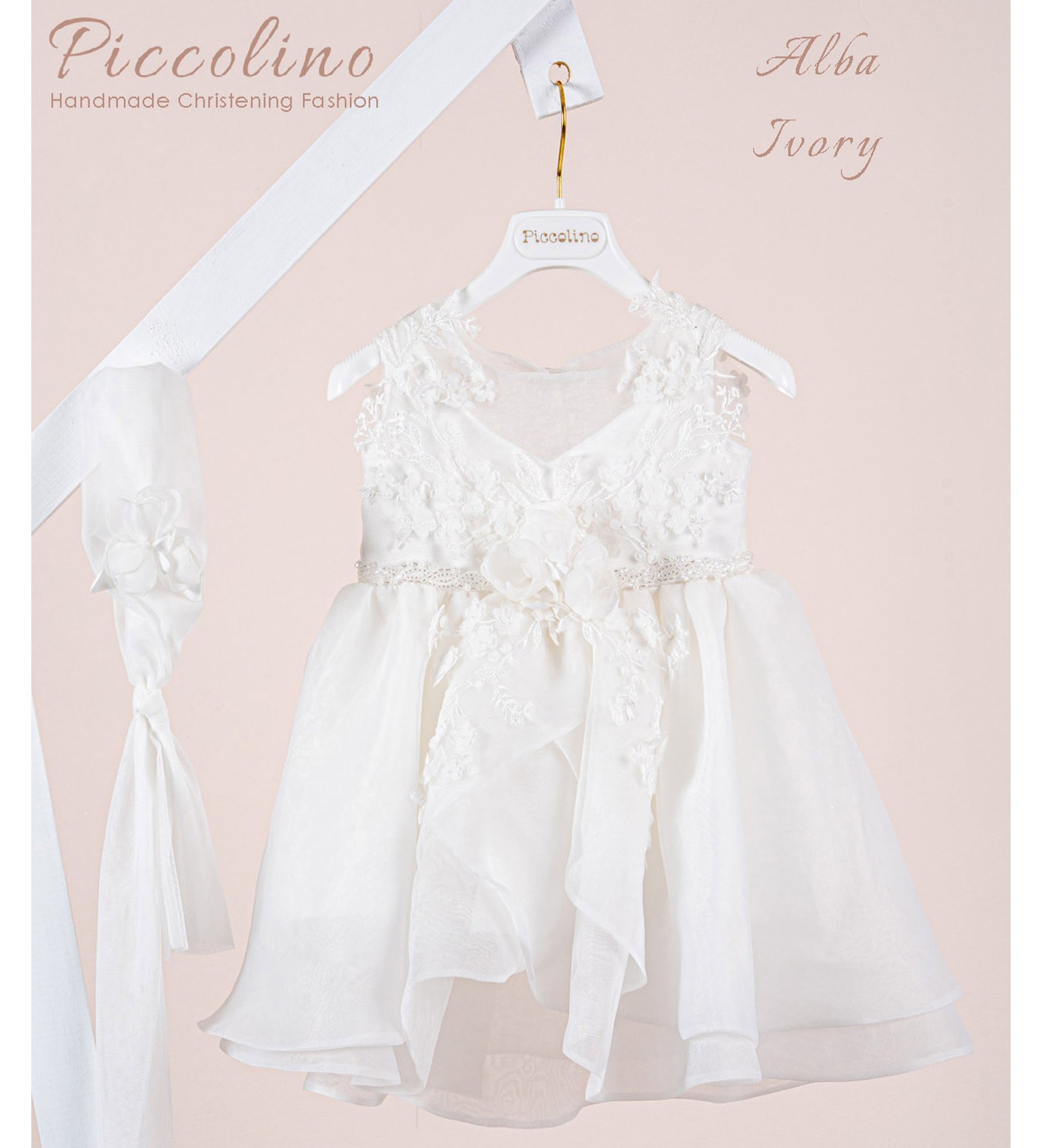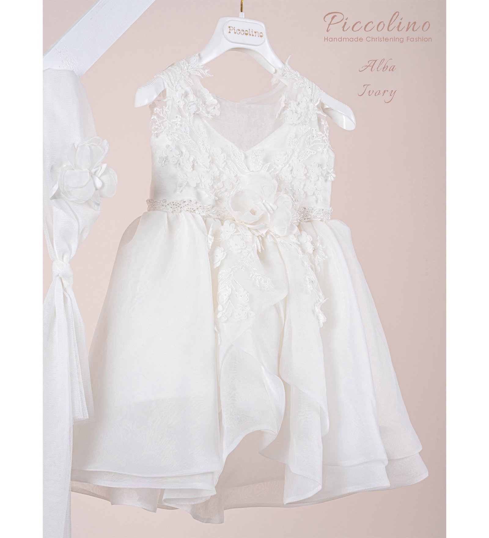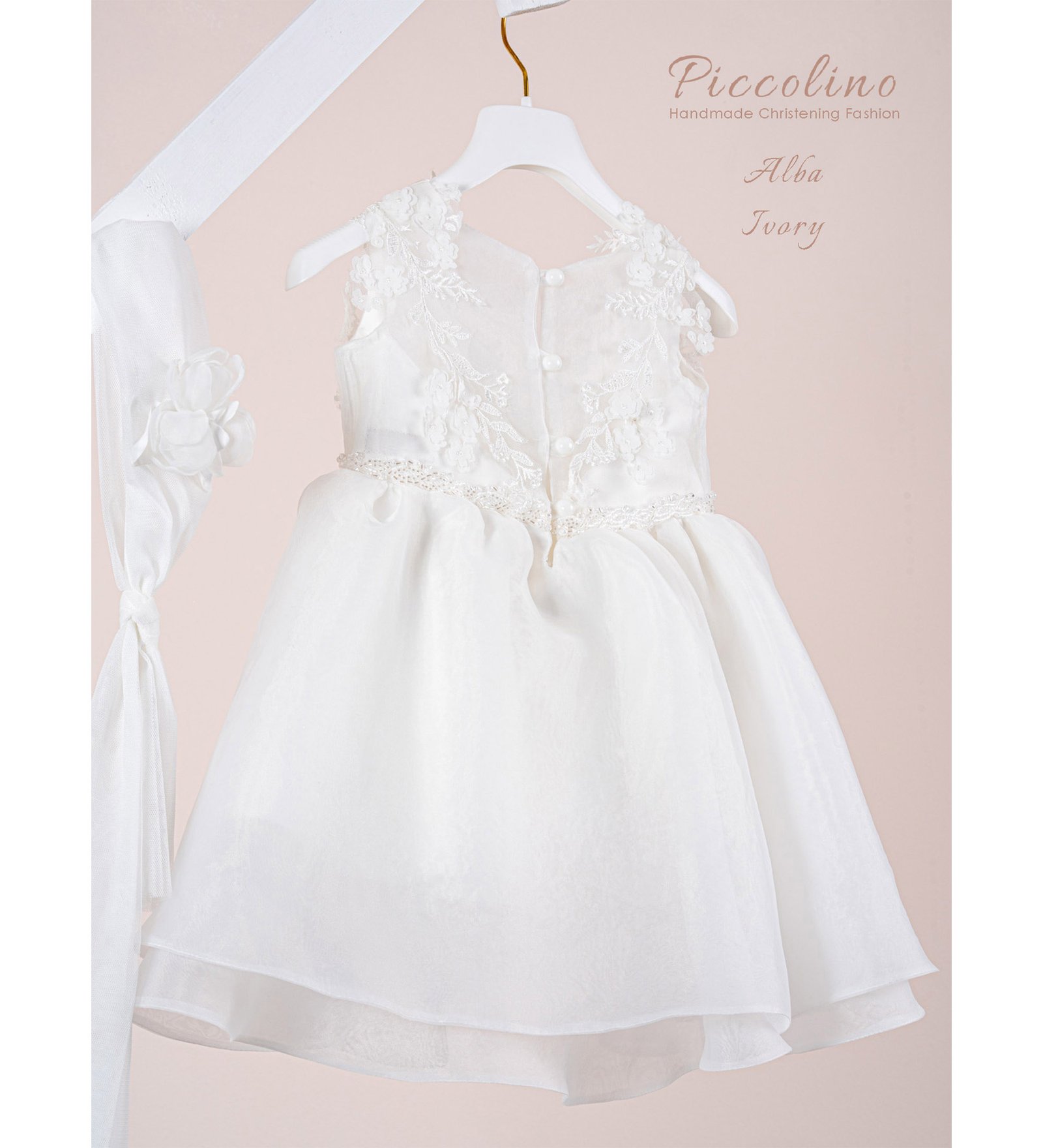 «ALBA» Βαπτιστικό Φόρεμα με αξεσουάρ για τα μαλλιά, εξαιρετικής ποιότητας. Διαθέτει βαμβακερή επένδυση.