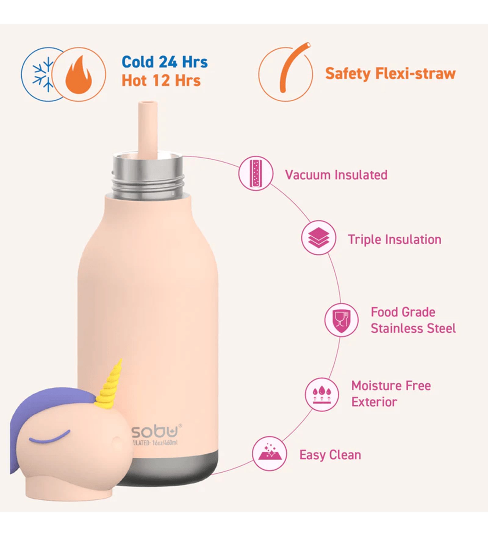 Γνωρίστε το νέο σας κολλητό! Αυτά τα αξιολάτρευτα παγούρια-θερμός 460ml σας βοηθούν να παραμένετε ενυδατωμένοι όλη μέρα και διαθέτουν μια αφαιρούμενη, συλλεκτική κεφαλή σιλικόνης με χαρακτήρα που προσθέτει μια παιχνιδιάρικη πινελιά σε κάθε γουλιά! Χάρη στην προηγμένη διπλή μόνωση κενού, διατηρούν το περιεχόμενο κρύο έως και για 24 ώρες. Επιπλέον, έχουν πολύ βολικό μέγεθος για να χωράνε άνετα στην τσάντα σας ή στην ποτηροθήκη σας, διευκολύνοντας την μεταφορά του καλύτερου σας φίλου όπου κι αν πάτε. Όλα τα παγούρια Asobu είναι 100% απαλλαγμένα από μόλυβδο, PFAS, BPA FREE και φθαλικές ενώσεις ώστε να μπορείτε να πείτε με σιγουριά. Είναι κατασκευασμένα από ανοξείδωτο ατσάλι 18/8