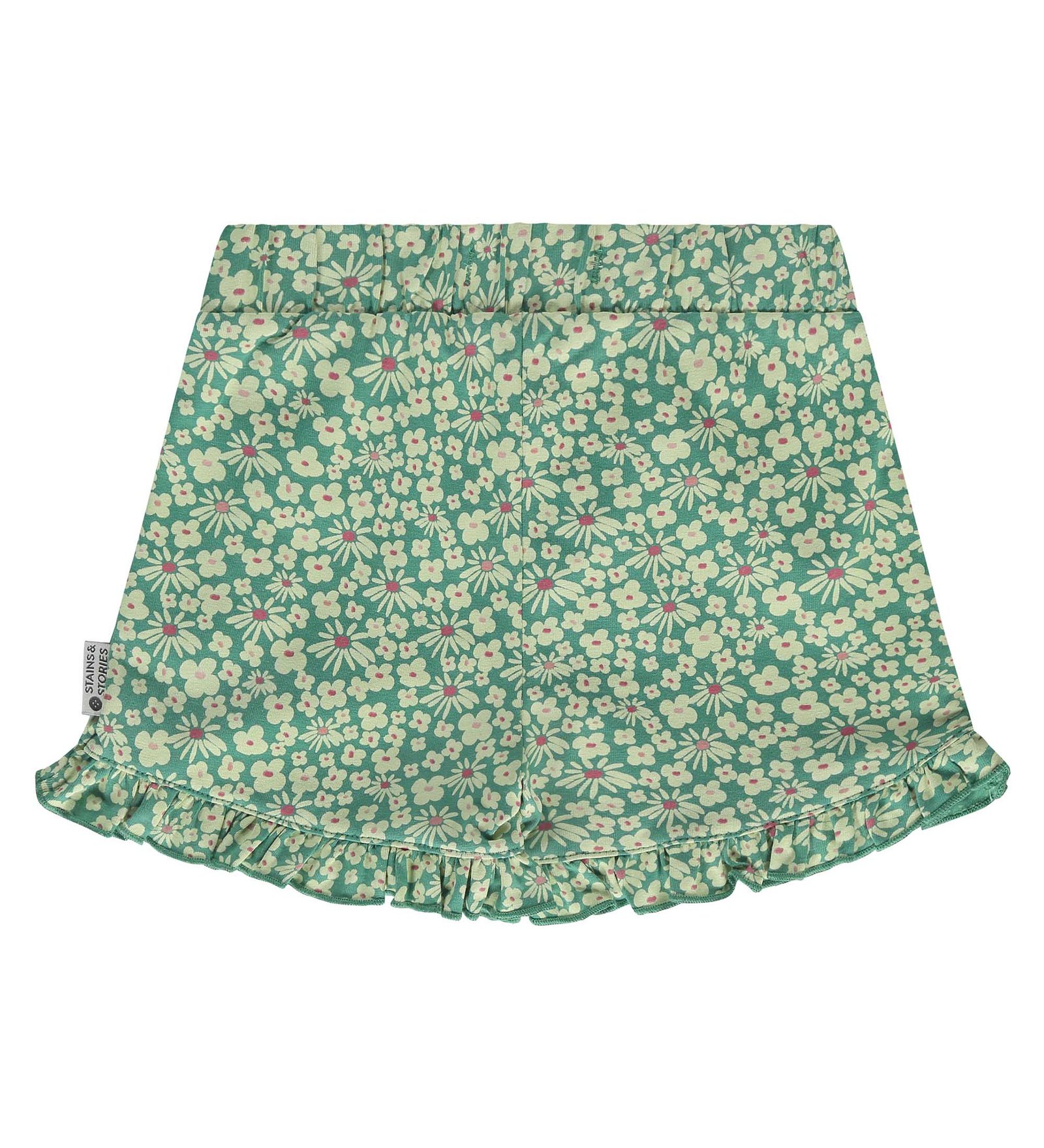 “Baby Face” Βαμβακερή φούστα σορτσάκι για κορίτσι πράσινο με λευκά λουλουδάκια. Το ύφασμα του είναι πολύ δροσερό. Κατάλληλο για κάθε μέρα.