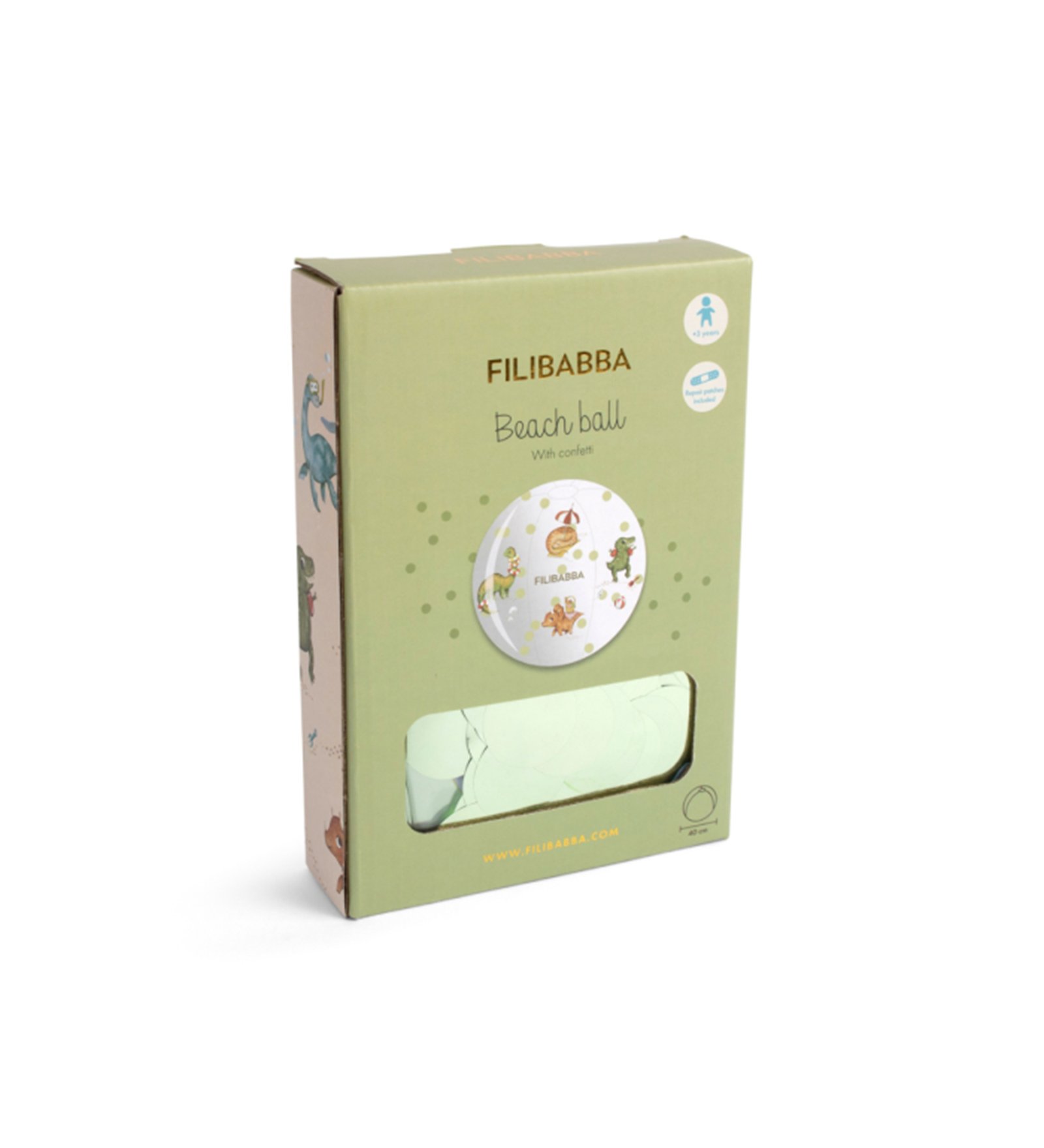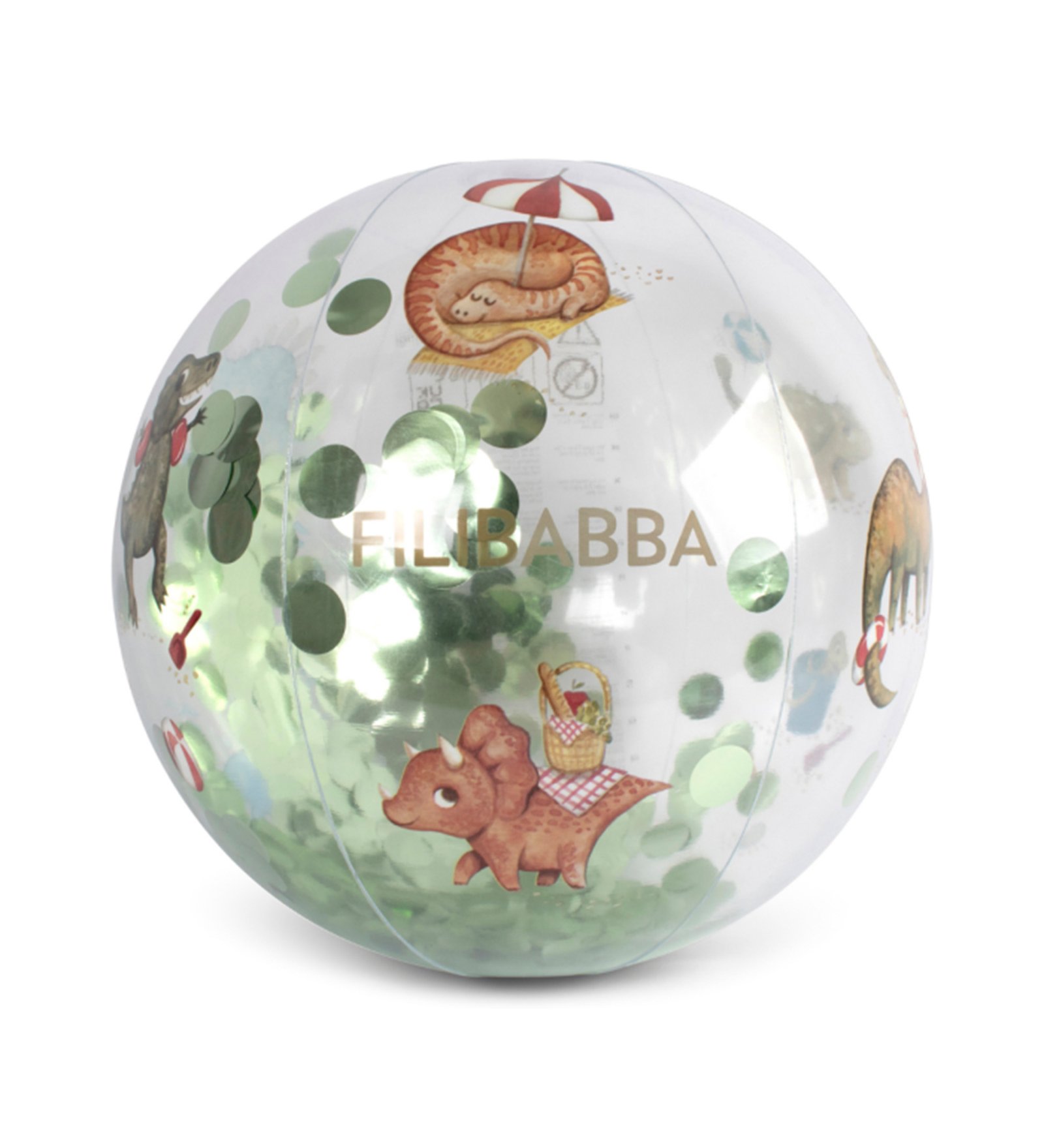 Δείτε αυτό το χαριτωμένο σχέδιο! Ποιος δεν αγαπά τους δεινόσαυρους; Το σχέδιο “Dino Beach” φέρνει τους προϊστορικούς γίγαντες στην παραλία. Βρείτε έναν Τ-Ρεξ που κολυμπά, κολυμπήστε με έναν Πλησιόσαυρο ή απολαύστε ένα παραμυθένιο πικνίκ με έναν Τρικεράτοπα. Δεν λείπουν οι περιπέτειες με αυτούς τους τεράστιους νέους συντρόφους παιχνιδιού. Ως ειδικό χαρακτηριστικό, η μπάλα είναι διάφανη και γεμάτη με διασκεδαστικά πολύχρωμα κομφετί!
