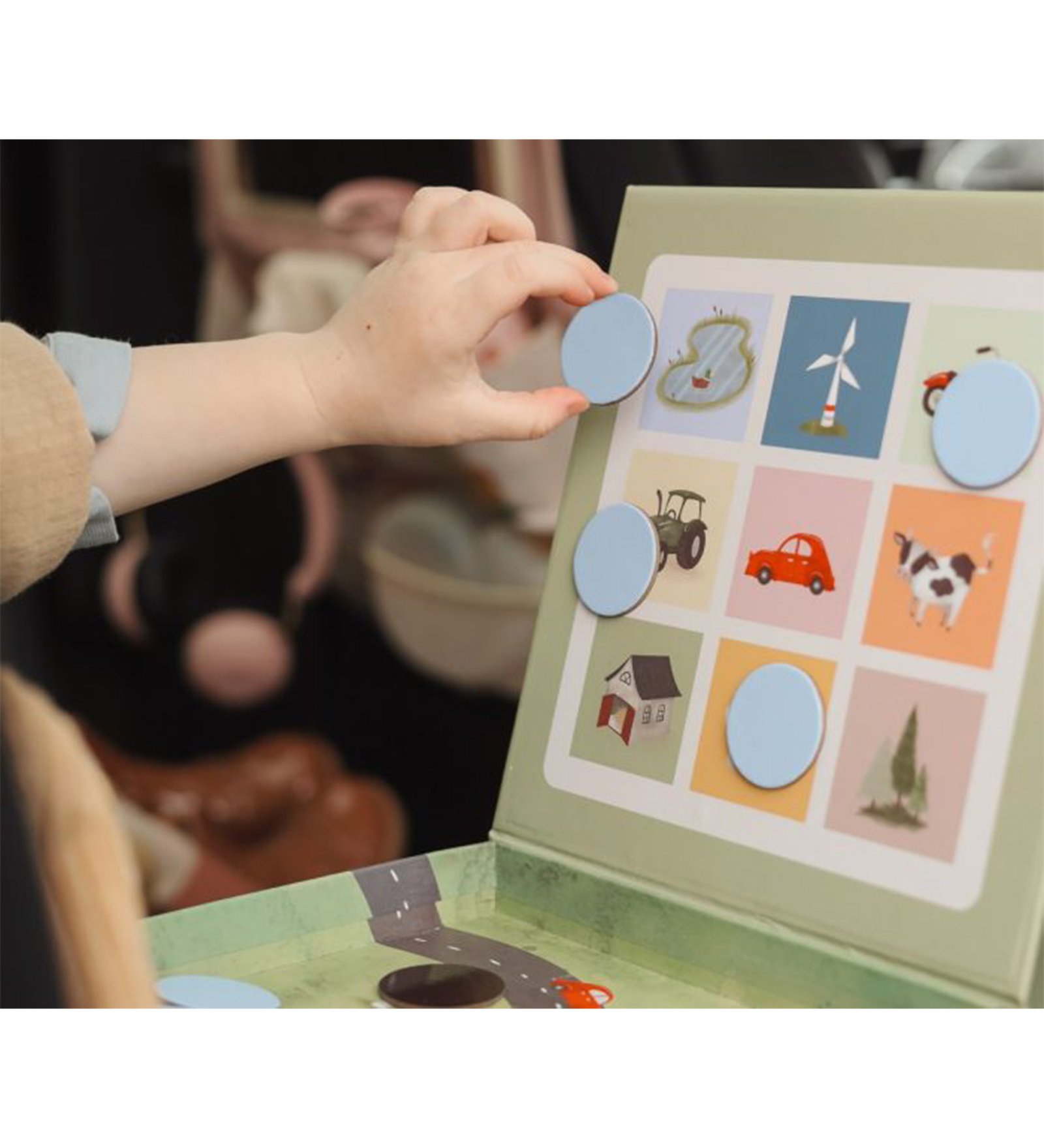 Το πρακτικό μαγνητικό εκπαιδευτικό παιχνίδι με πολύχρωμες, χειροποίητες εικονογραφήσεις προσφέρει ψυχαγωγία χωρίς οθόνες για μικρούς και μεγάλους. Χάρη στην άνετη συσκευασία με το μαγνητικό ταμπλό, όλα τα εξαρτήματα παραμένουν στη θέση τους.