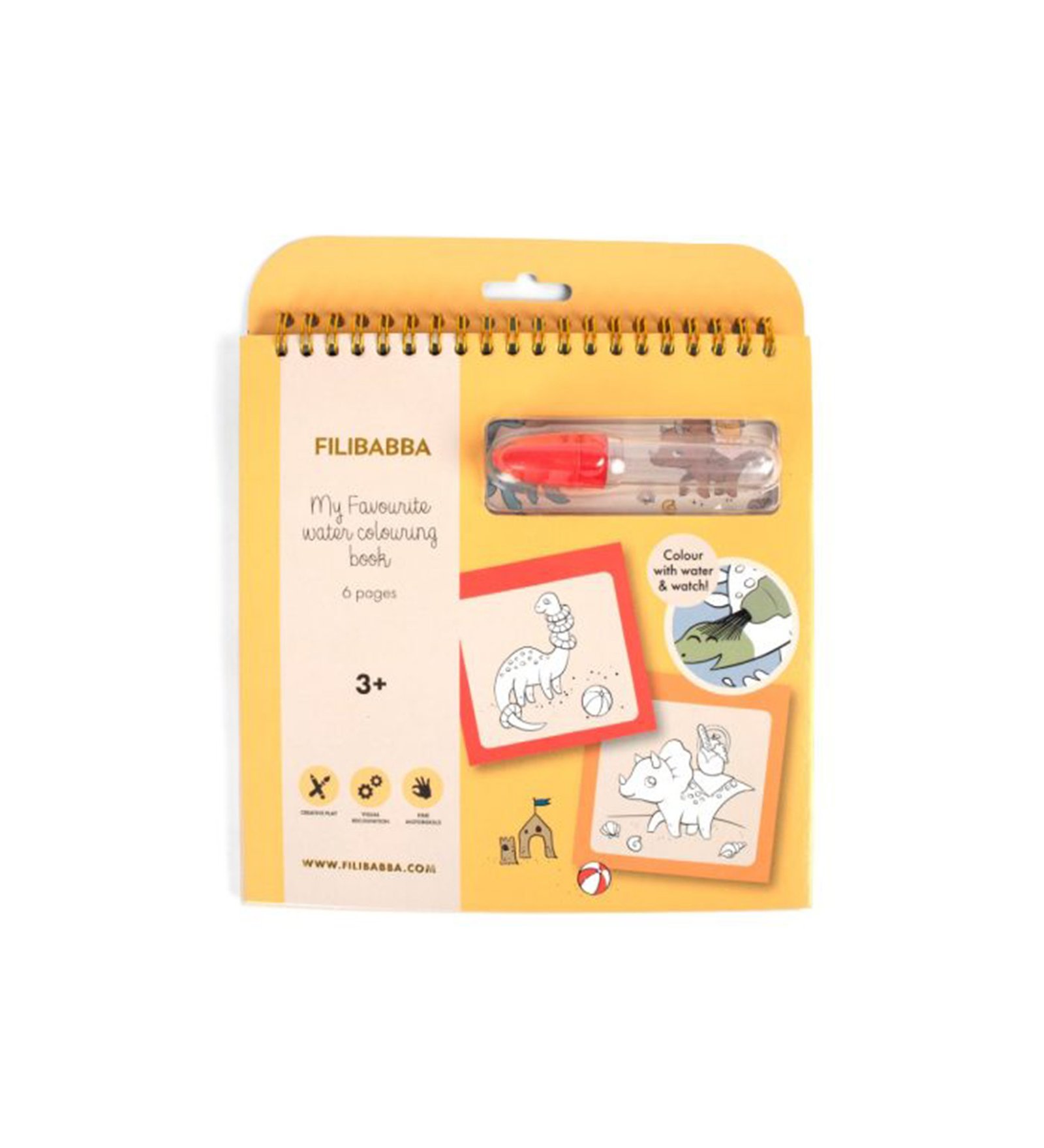 Βυθιστείτε σε δημιουργικό εκπαιδευτικό παιχνίδι με το νέο αγαπημένο σας βιβλίο ζωγραφικής με νερό! Αυτό το υπέροχο βιβλίο ζωγραφικής ενθουσιάζει τους νέους καλλιτέχνες με χαριτωμένους δεινόσαυρους-συντρόφους, ενώ προσφέρει στους γονείς την άνεση του καθαρού και χωρίς ακαταστασία με το ειδικό πενάκι νερού.