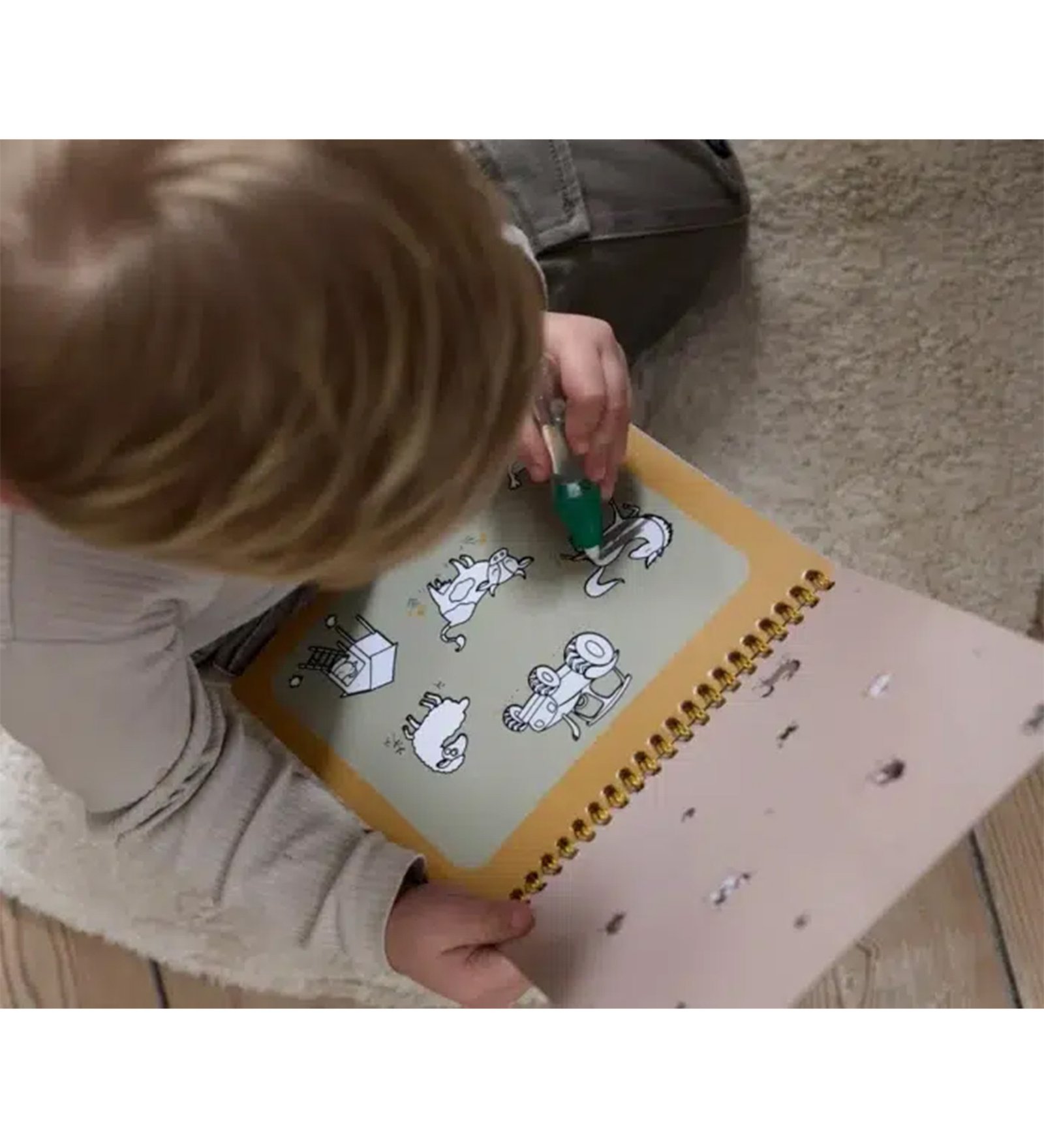 Το βιβλίο ζωγραφικής θα ενθουσιάσει το παιδί σας με τη μαγεία του! Απλά γεμίστε το πενάκι νερού, περάστε το πάνω από τις σελίδες και παρακολουθήστε καθώς ζωντανεύουν ζωηρά χρώματα μπροστά στα μάτια του. Ιδανικό για χρήση εν κινήσει, το βιβλίο ζωγραφικής διαθέτει έξι ανθεκτικές σελίδες από χαρτόνι με διάφορα στοιχεία που μπορούν να χρωματιστούν.