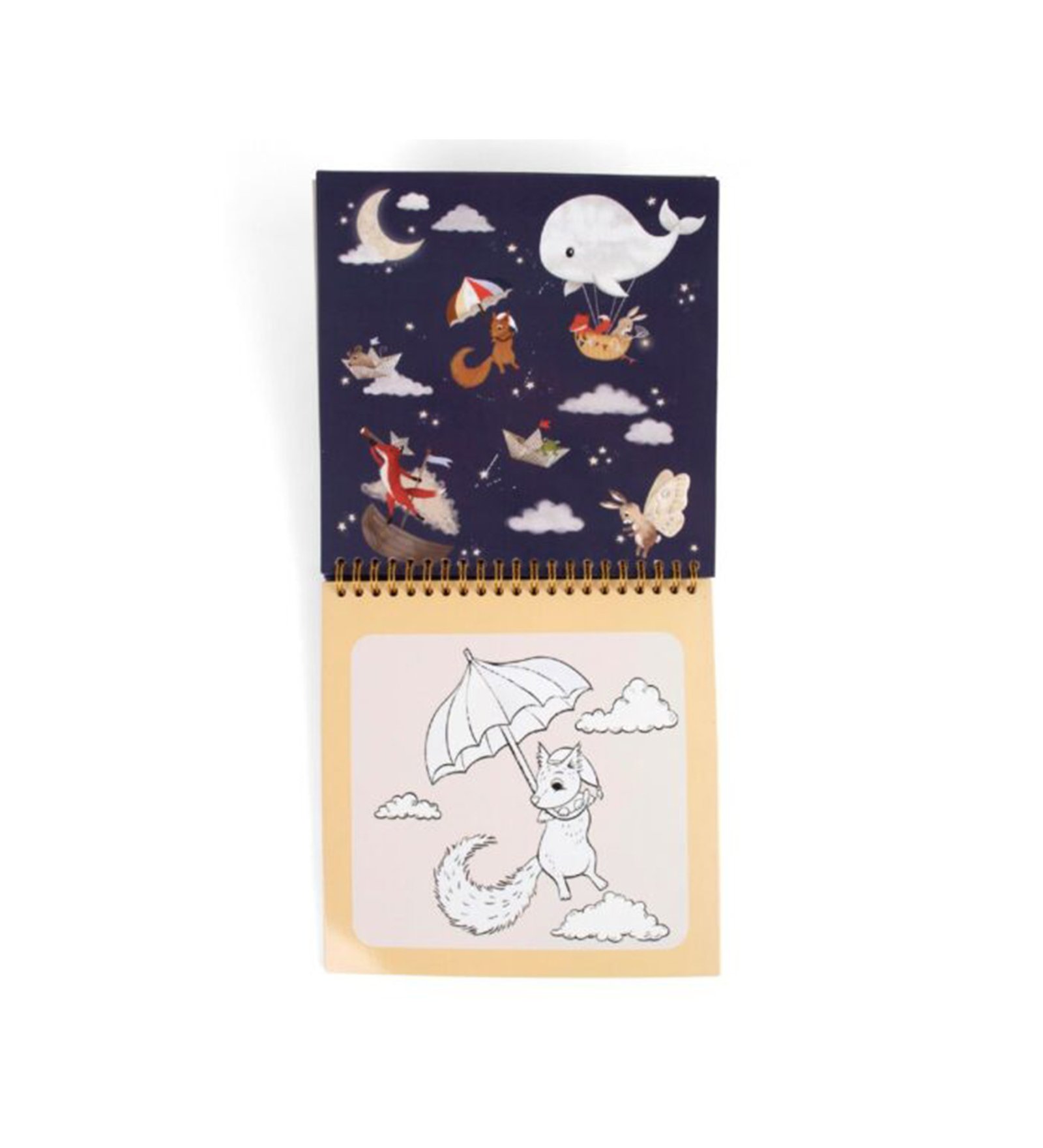 Το βιβλίο ζωγραφικής με νερό περιλαμβάνει συναρπαστικές εικονογραφήσεις από το σχέδιο Dreamy Adventurers, ζωντανεύοντας μαγικά ζωάκια, λαμπερά αστέρια και ονειρεμένα αερόστατα που πετούν μέσα σε έναστρο ουρανό. Κάθε σελίδα αποτελεί μια μαγική πρόσκληση για δημιουργία, εξερεύνηση και όνειρα.