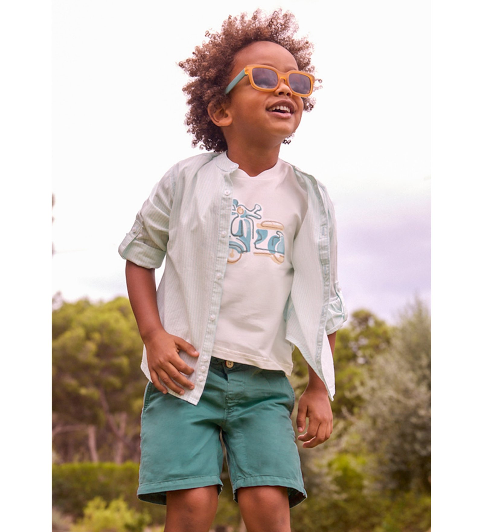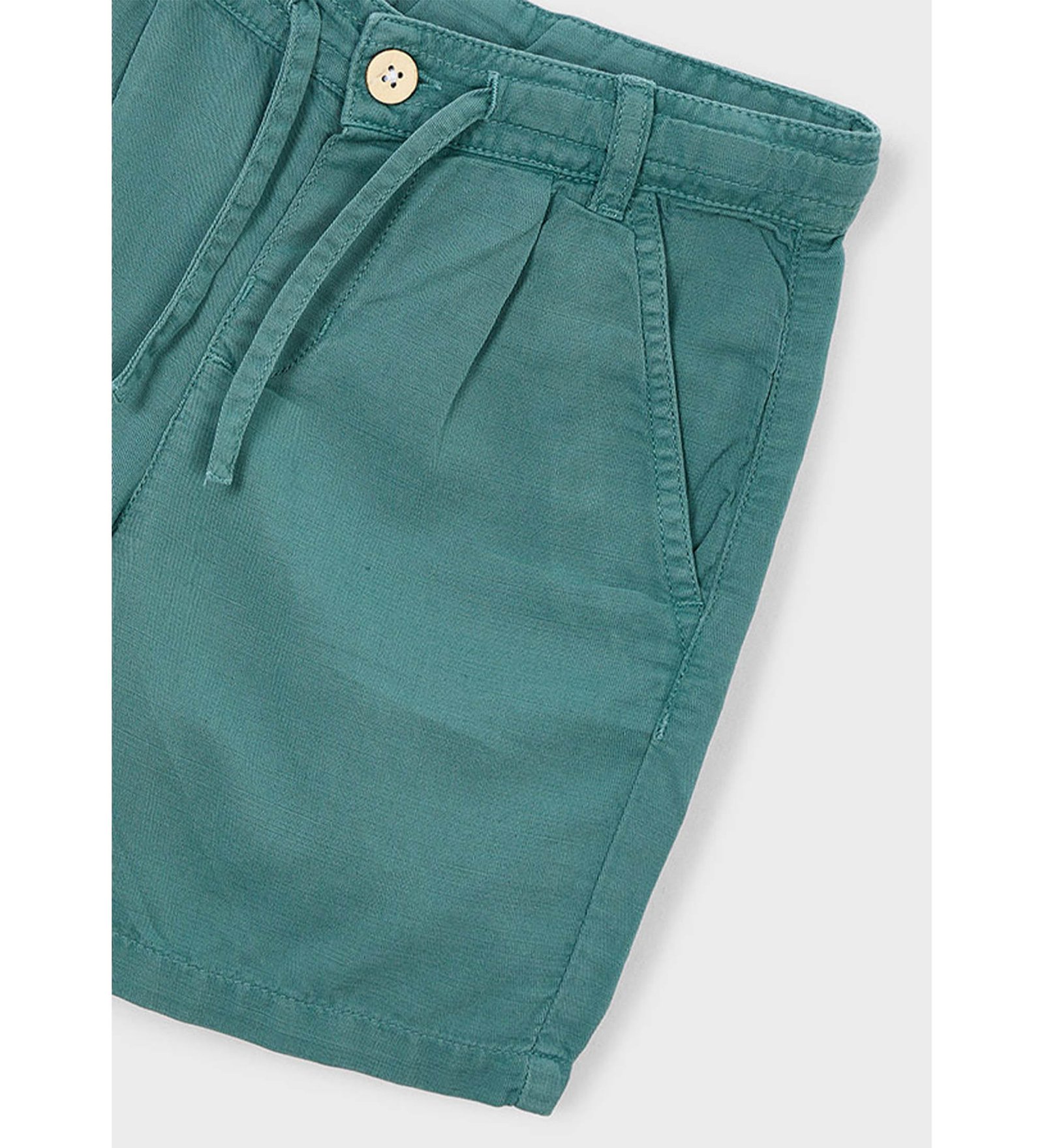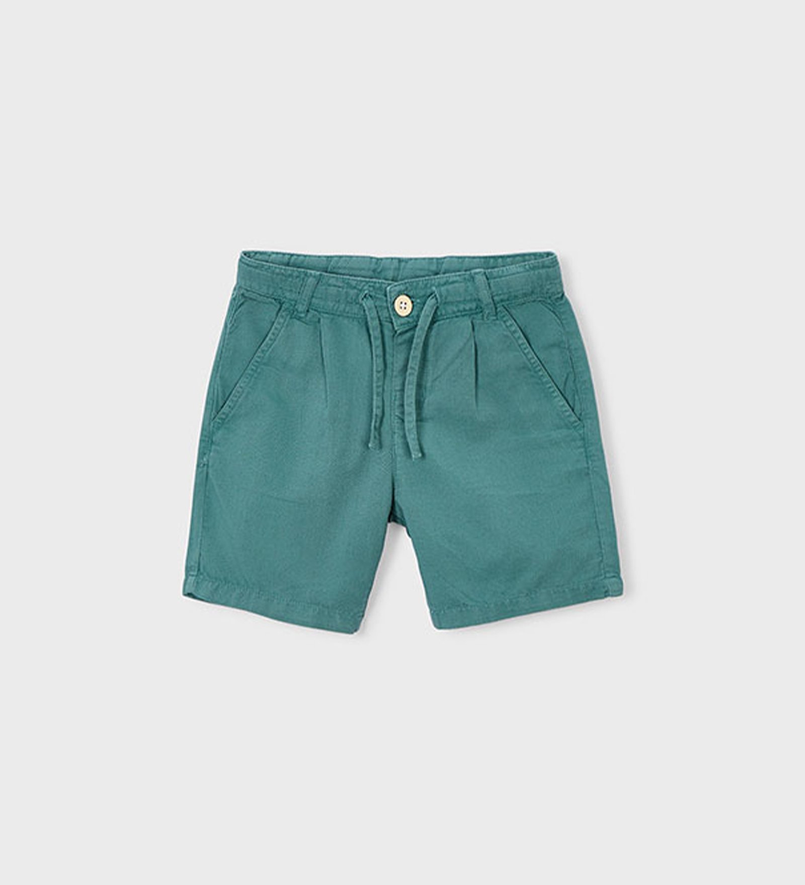 “Mayoral” Παιδική βερμούδα με ελαστική μέση και κορδόνι για ρύθμιση. Διαθέτει πλαϊνές τσέπες και κουμπί μπροστά, προσφέροντας άνεση και casual στυλ για καθημερινή χρήση.