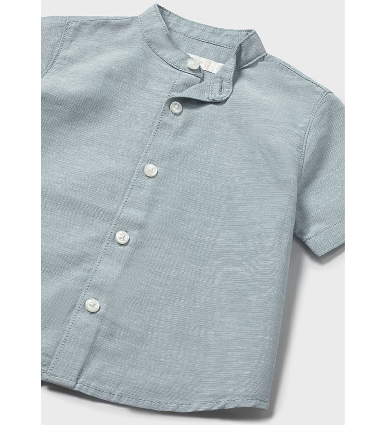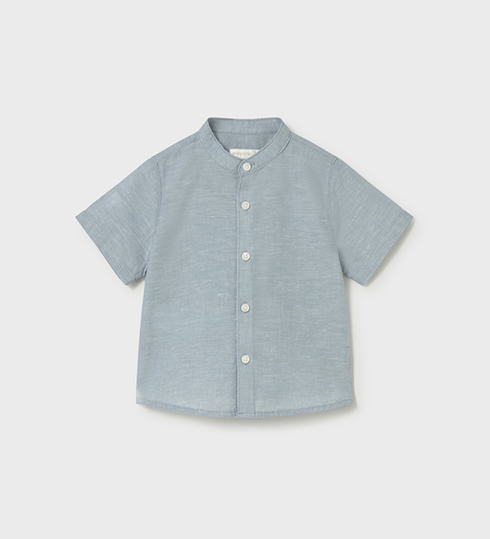 Ανοιχτό γαλάζιο κοντομάνικο πουκάμισο με μάο γιακά και κουμπιά σε όλο το μήκος μπροστά. Διαθέτει λιτή, κομψή γραμμή και ελαφριά υφή υφάσματος, ιδανικό για άνετες και καλοκαιρινές εμφανίσεις.