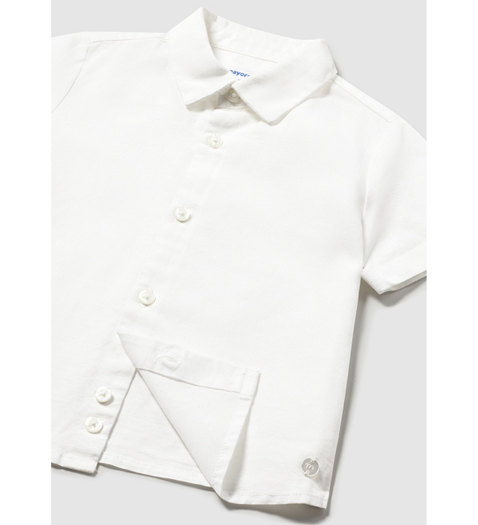 “Mayoral” Λευκό κοντομάνικο πουκάμισο με μάο γιακά και κουμπιά σε όλο το μήκος μπροστά. Διαθέτει λιτή, κομψή γραμμή και ελαφριά υφή υφάσματος.