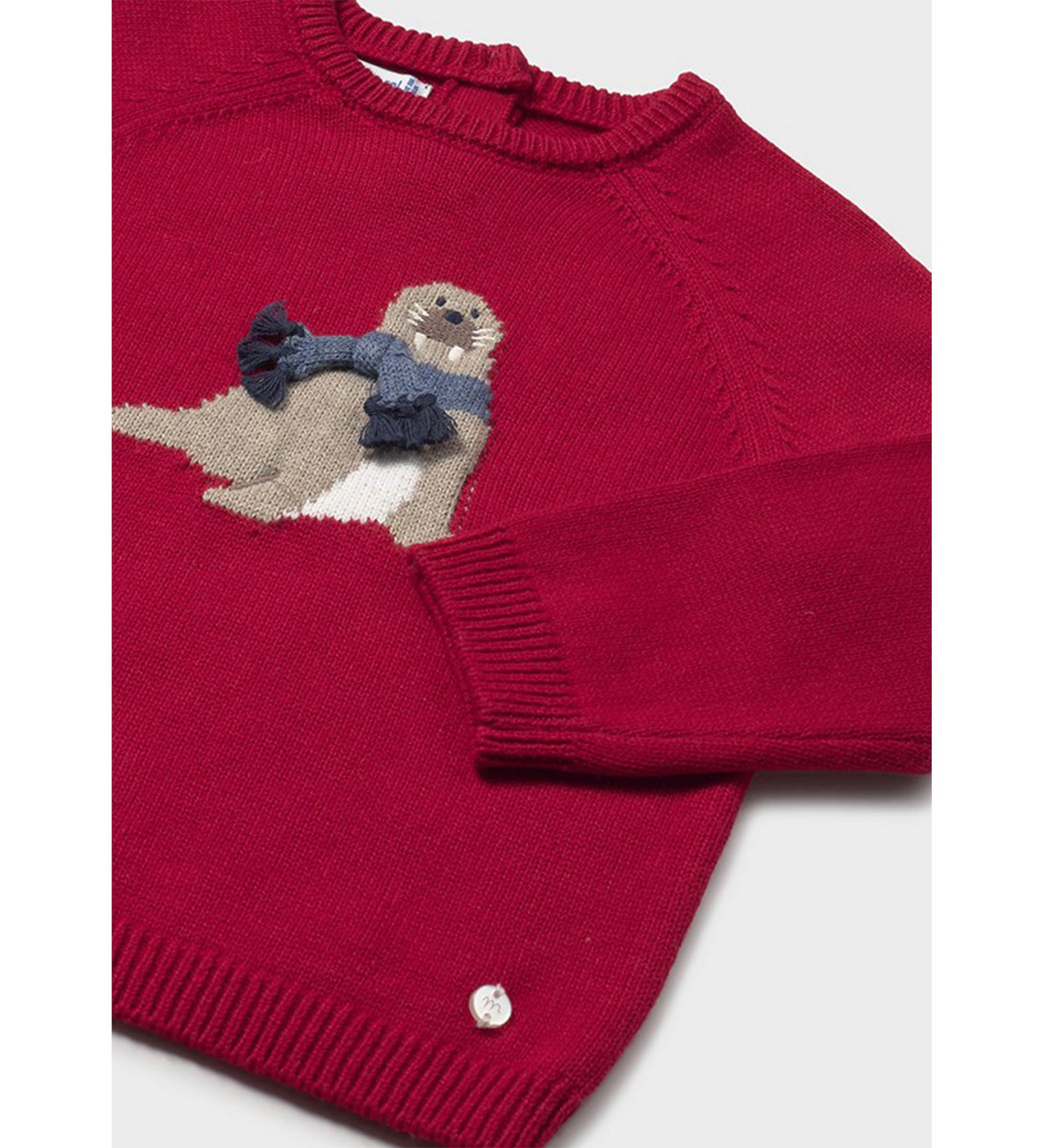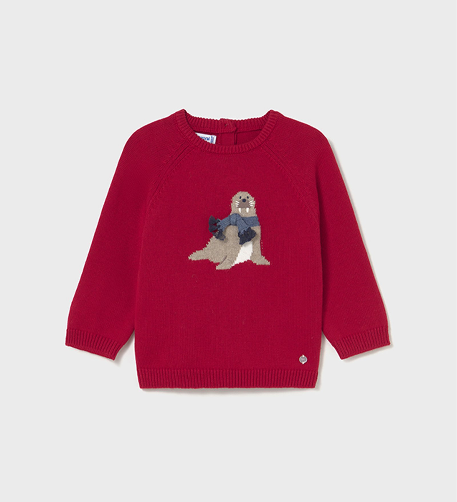 “Mayoral” Μακρυμάνικη πλεκτή μπλούζα με σχέδιο φώκια. Έχει πολύ απαλή υφή και διαθέτει κουμπάκια για εύκολη εφαρμογή.