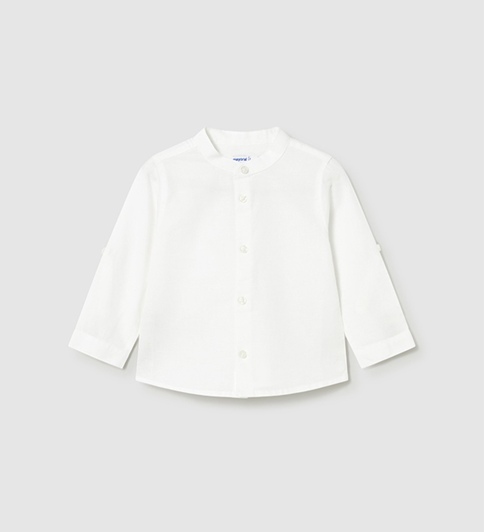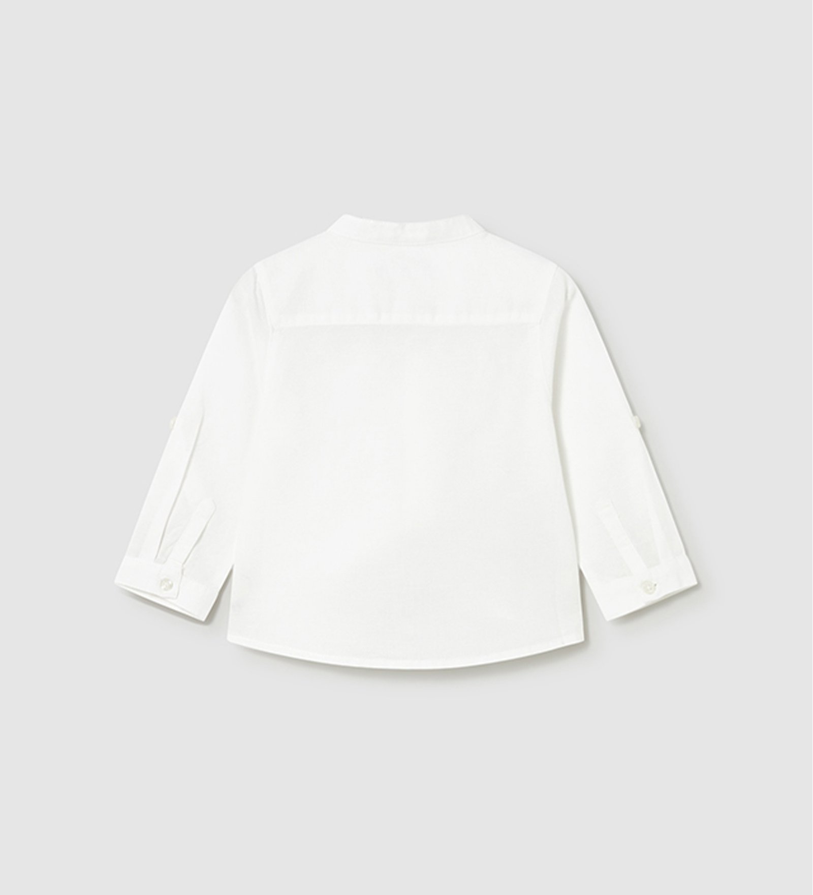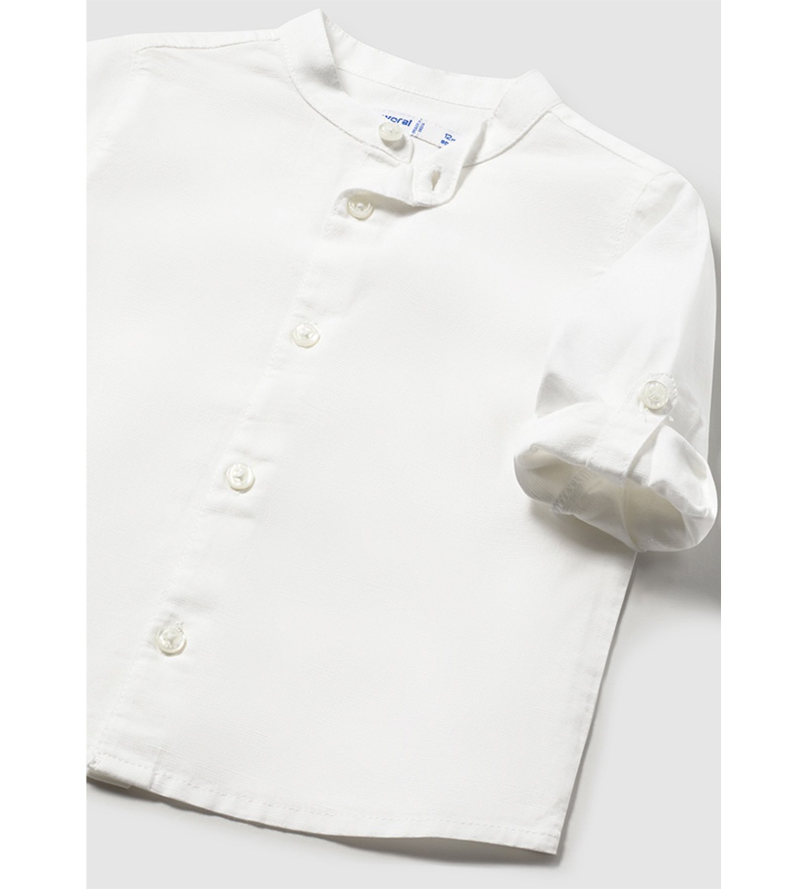 “Mayoral” Λευκό μακρυμάνικο πουκάμισο με μάο γιακά και κουμπιά σε όλο το μήκος μπροστά. Διαθέτει λιτή, κομψή γραμμή και ελαφριά υφή υφάσματος.