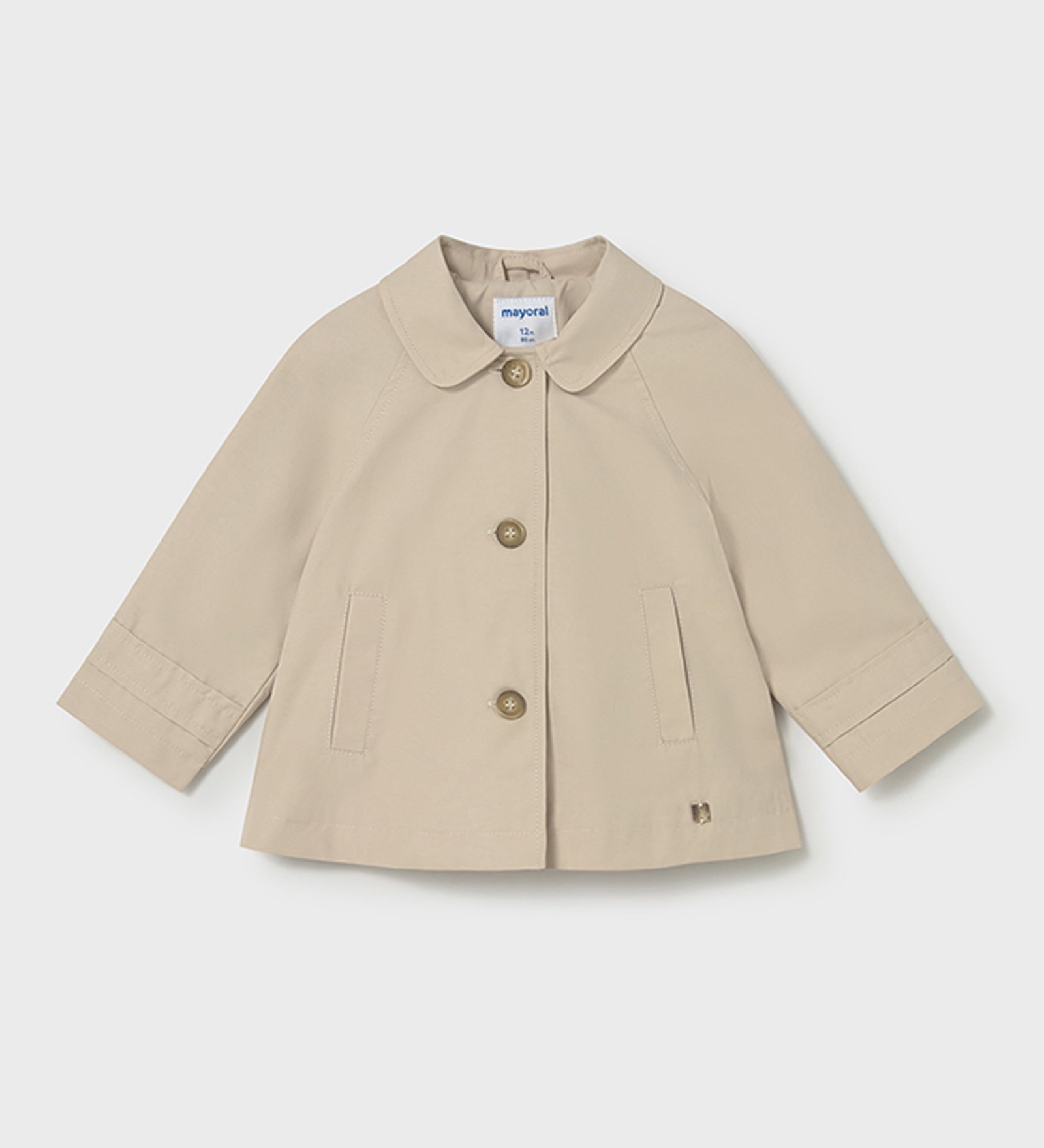 “Mayoral” Μπεζ παιδικό πανωφόρι με κλασικό γιακά και κουμπιά μπροστά. Διαθέτει πρακτικές τσέπες και απλό, κομψό σχεδιασμό, ιδανικό για καθημερινές εμφανίσεις.
