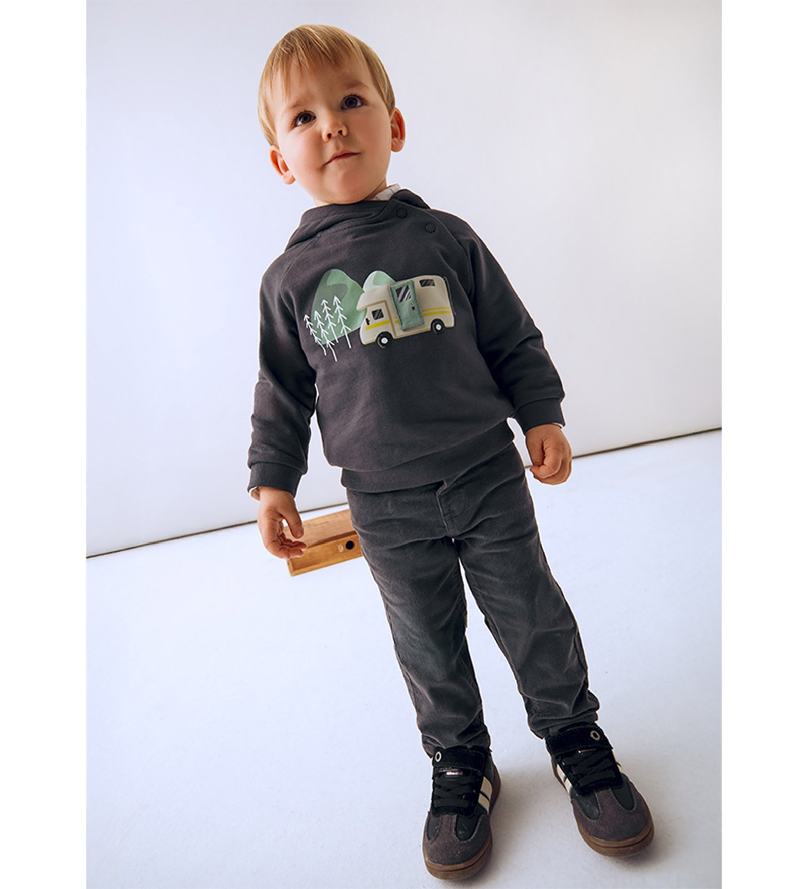“Mayoral” Κοτλέ παντελόνι σκούρο γκρι με ενσωματωμένο λάστιχο στο εσωτερικό του για εύκολη εφαρμογή.