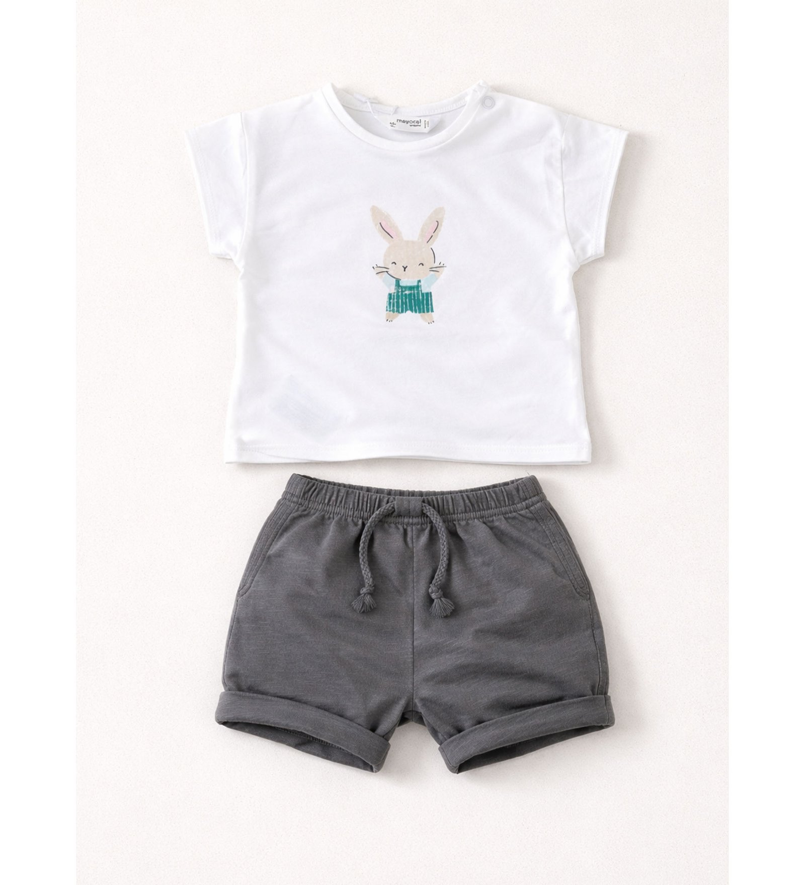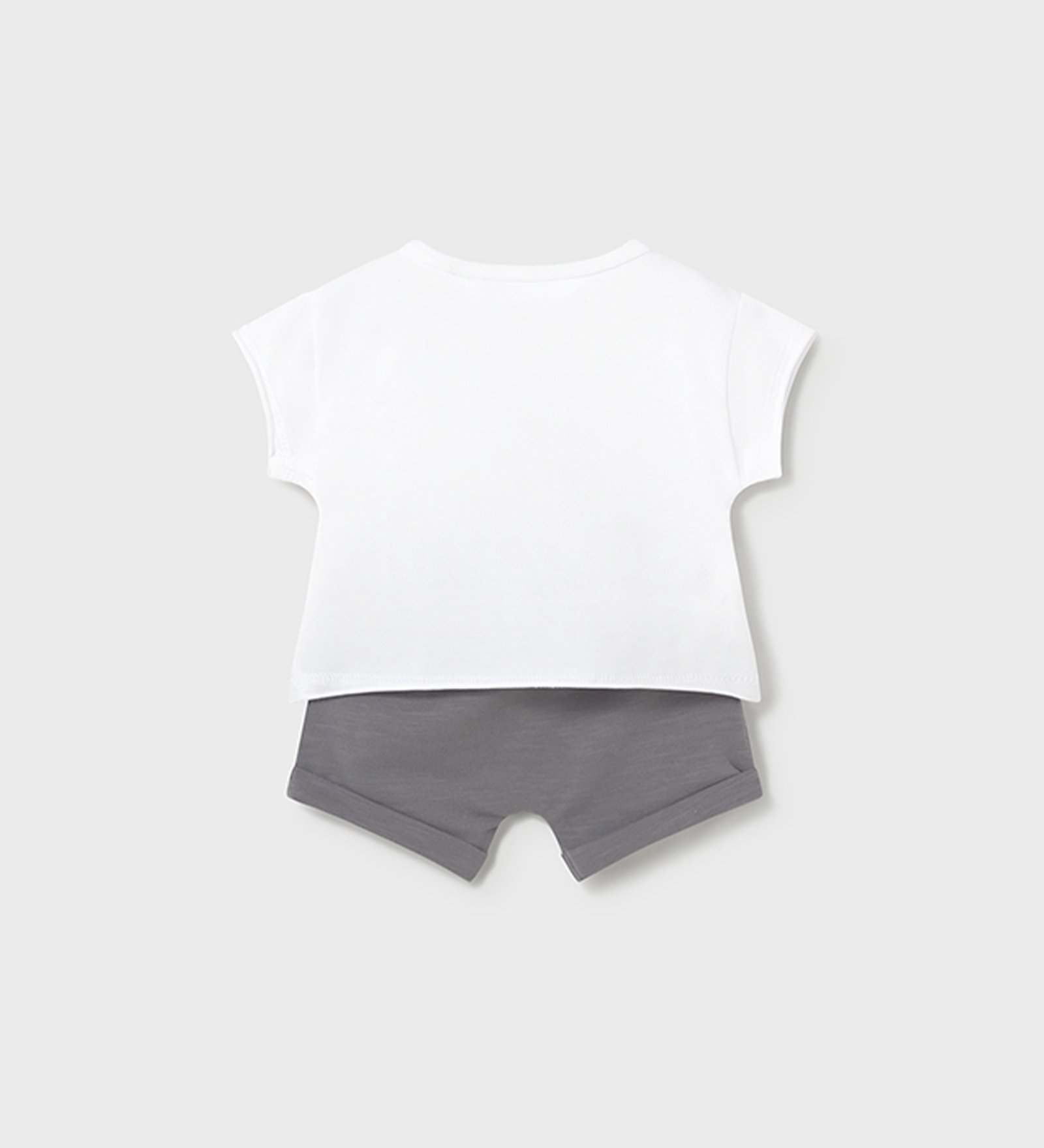 “Mayoral” Βρεφικό σετ για αγόρι αποτελούμενο από λευκό κοντομάνικο μπλουζάκι και σορτσάκι σε σκούρο γκρι απόχρωση.