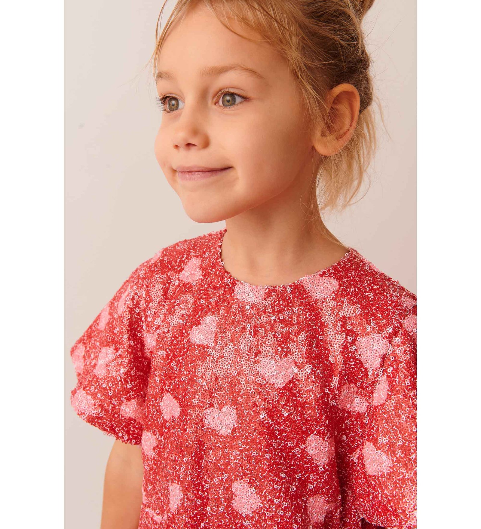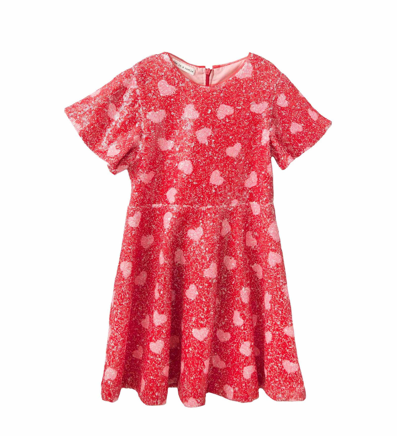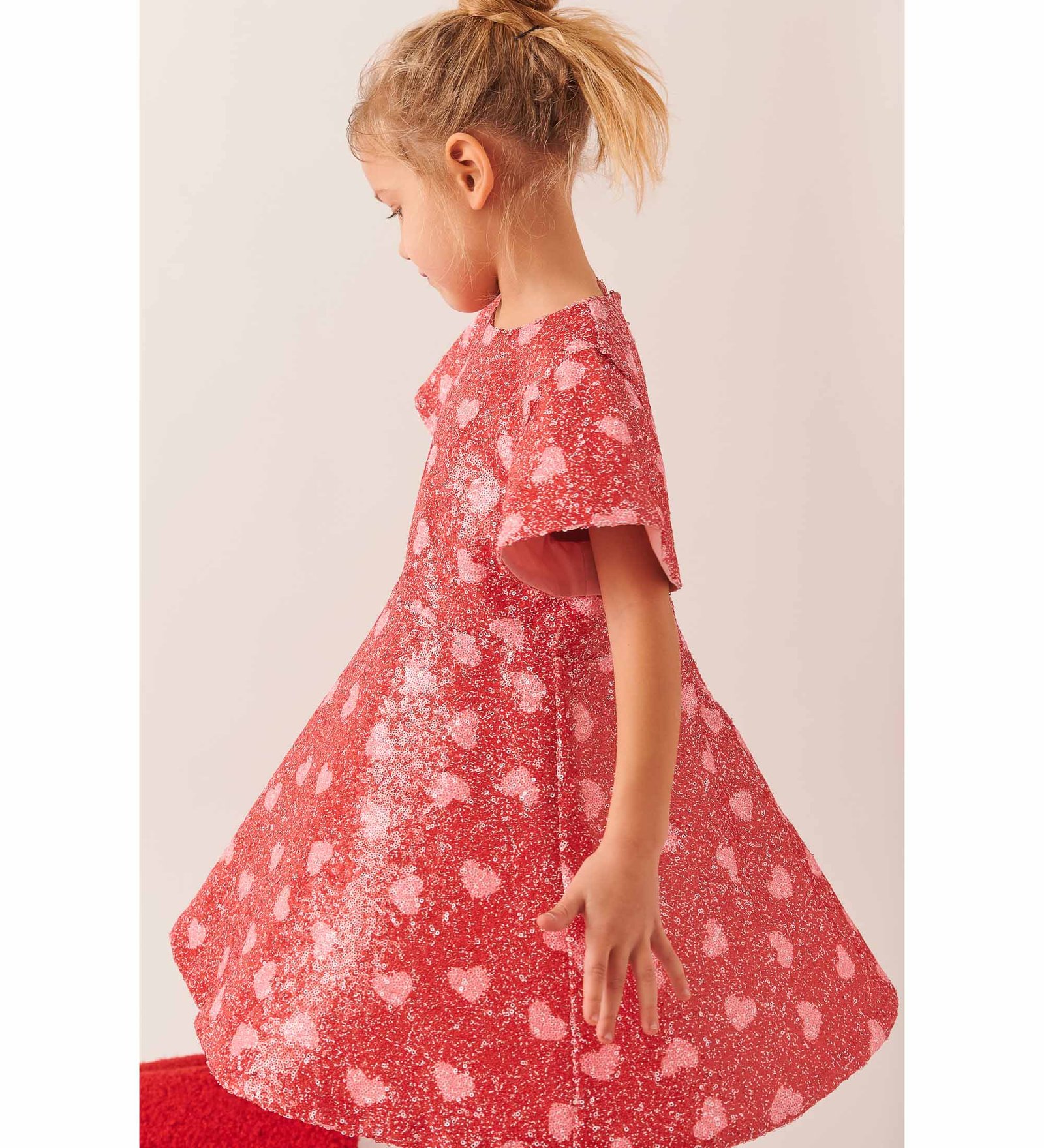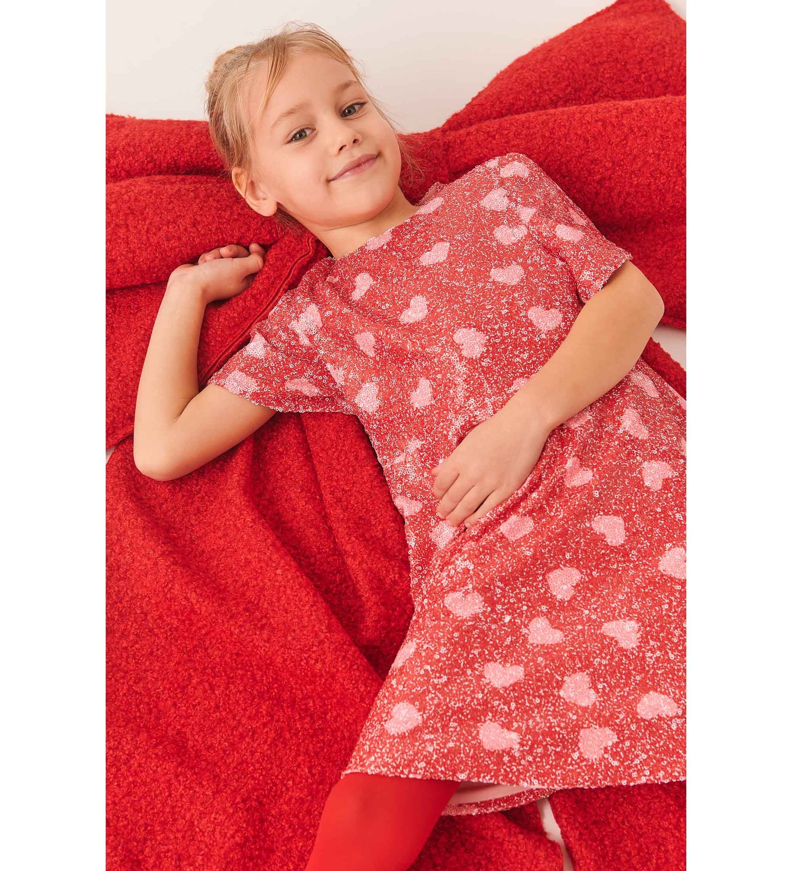 “Two in a Castle” Κόκκινο φόρεμα με παγιέτες και καρδιές all over για κορίτσι.