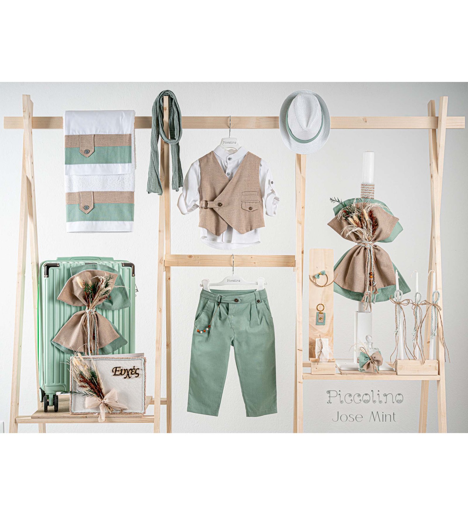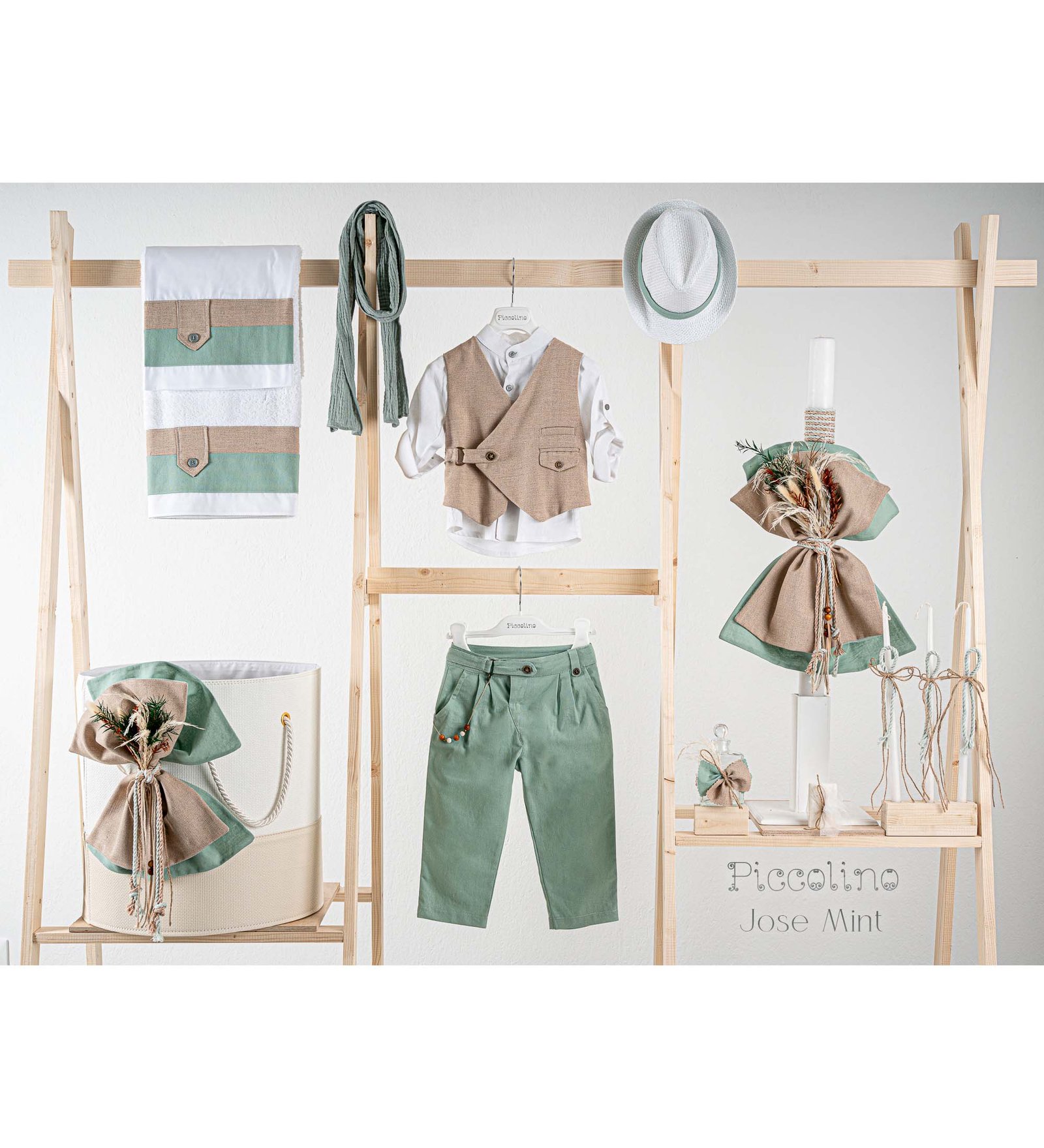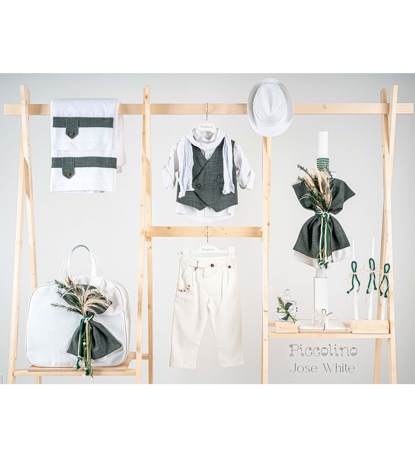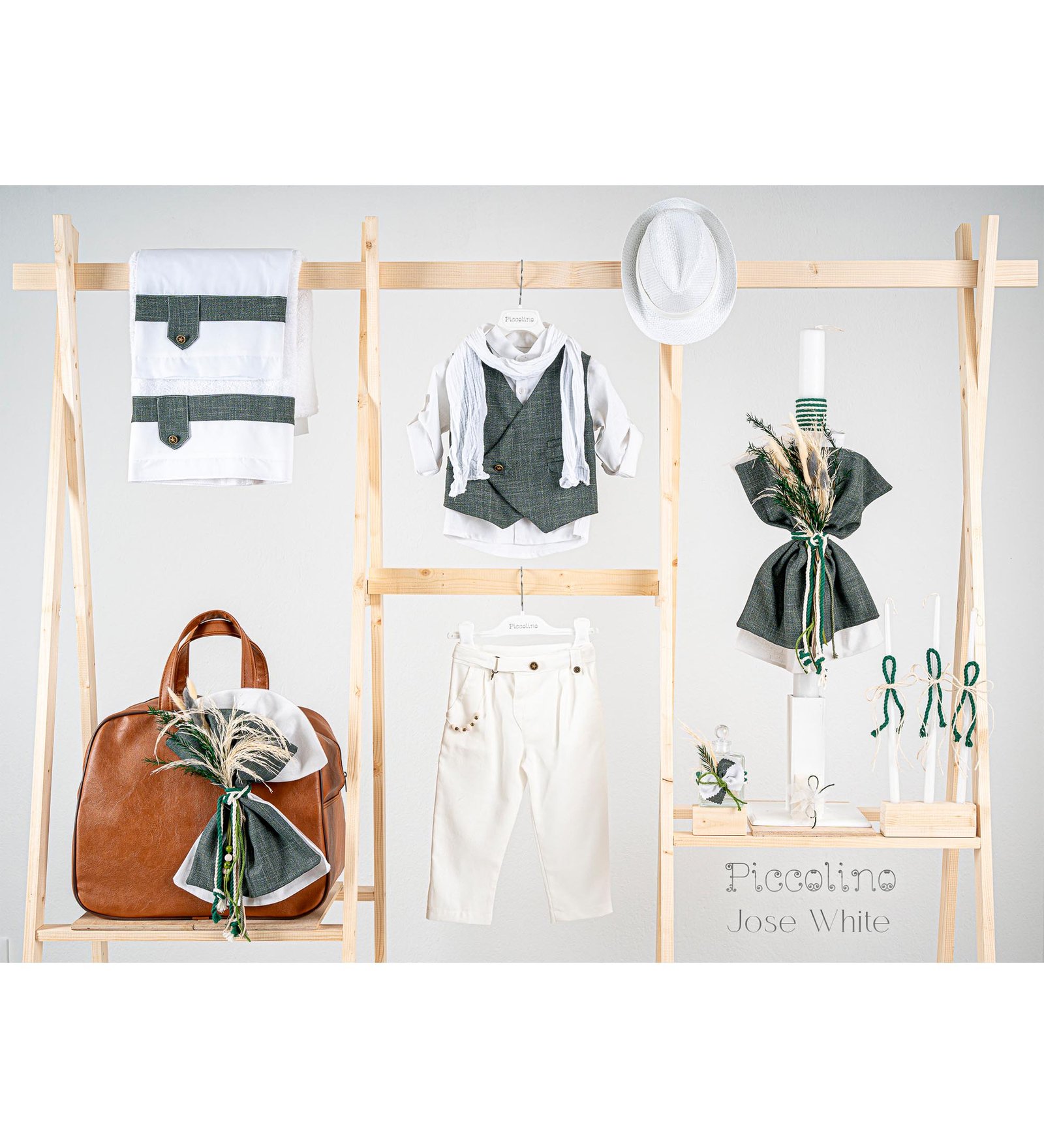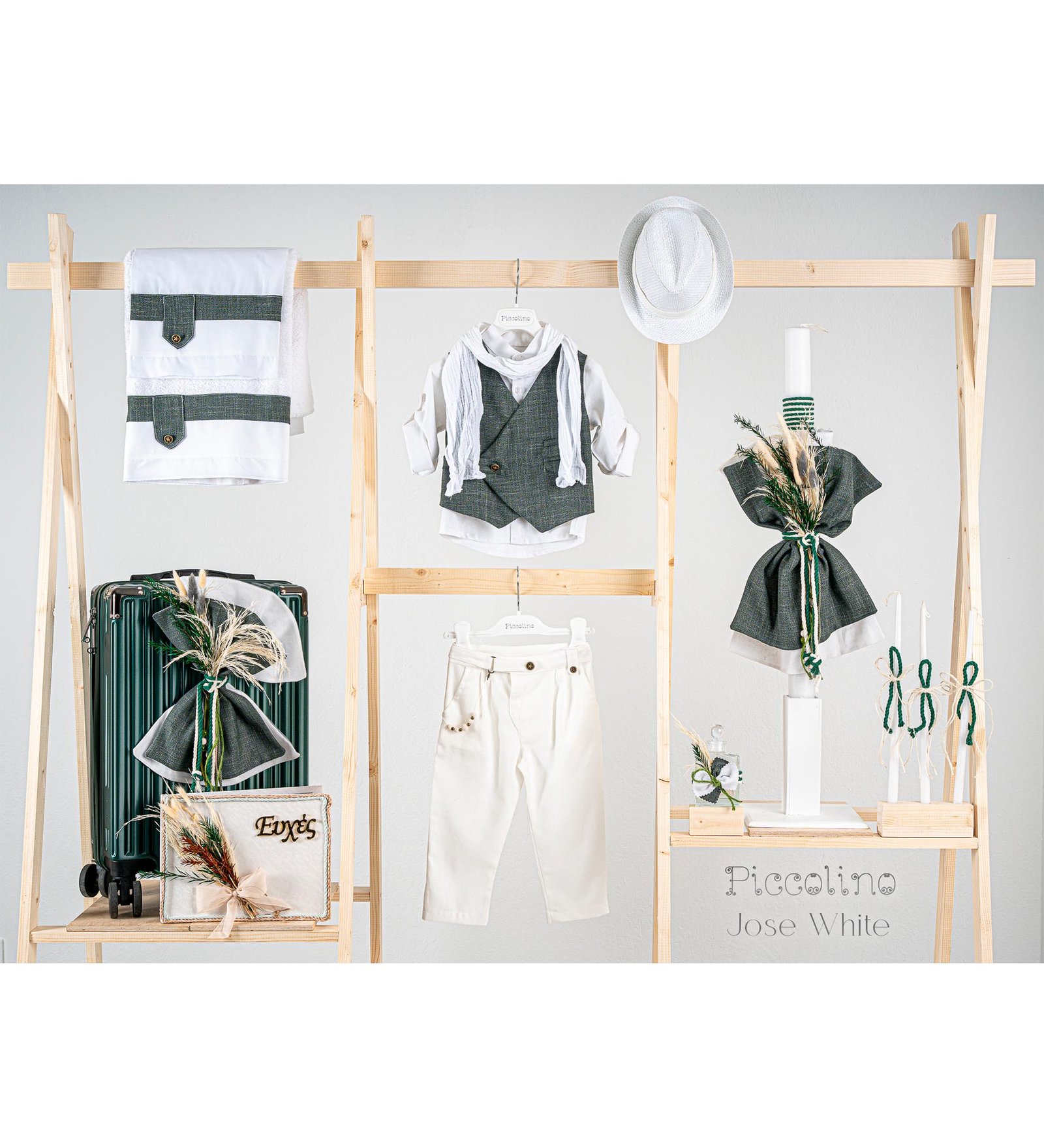 Κοστούμι με αξεσουάρ (καπέλο, παπιγιόν, τιράντες, φουλάρι, ζώνη, καλτσάκια) Τιμή βαπτιστικού ρούχου: 202€