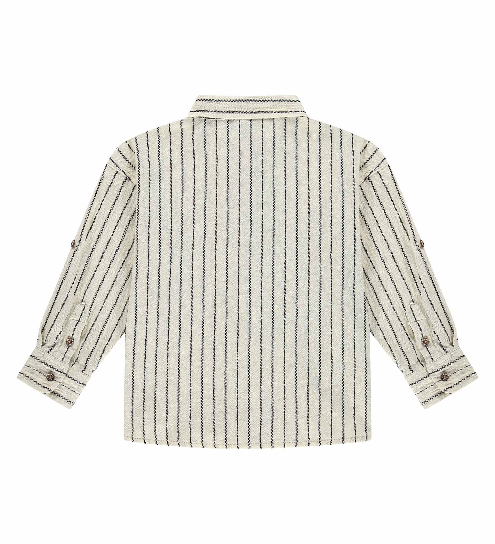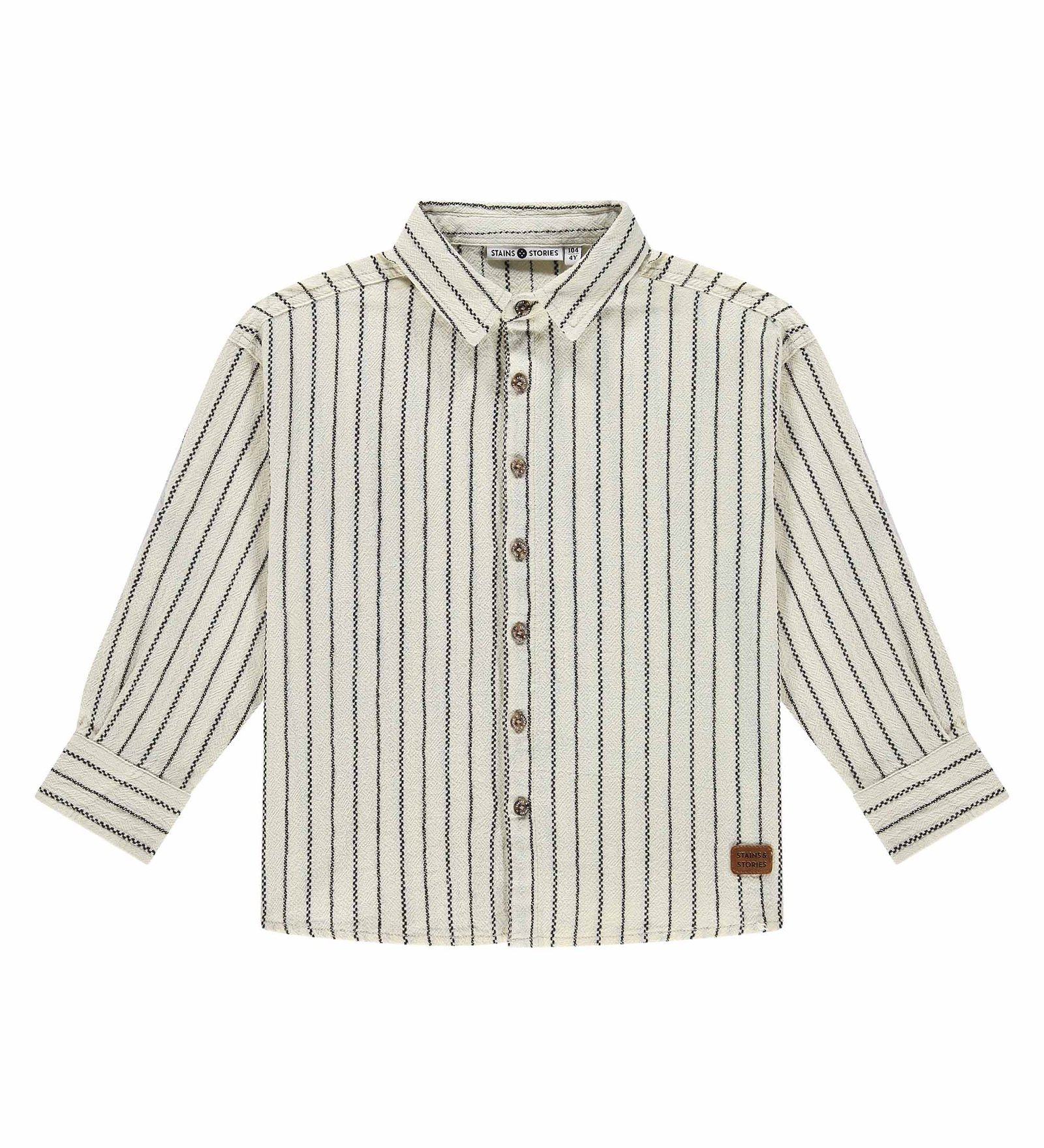 “Stains and Stories” Πουκάμισο βαμβακερό μακρυμάνικο με μανίκια που γυρίζουν στους αγκώνες σε μπεζ απόχρωση με μαύρες ρίγες.