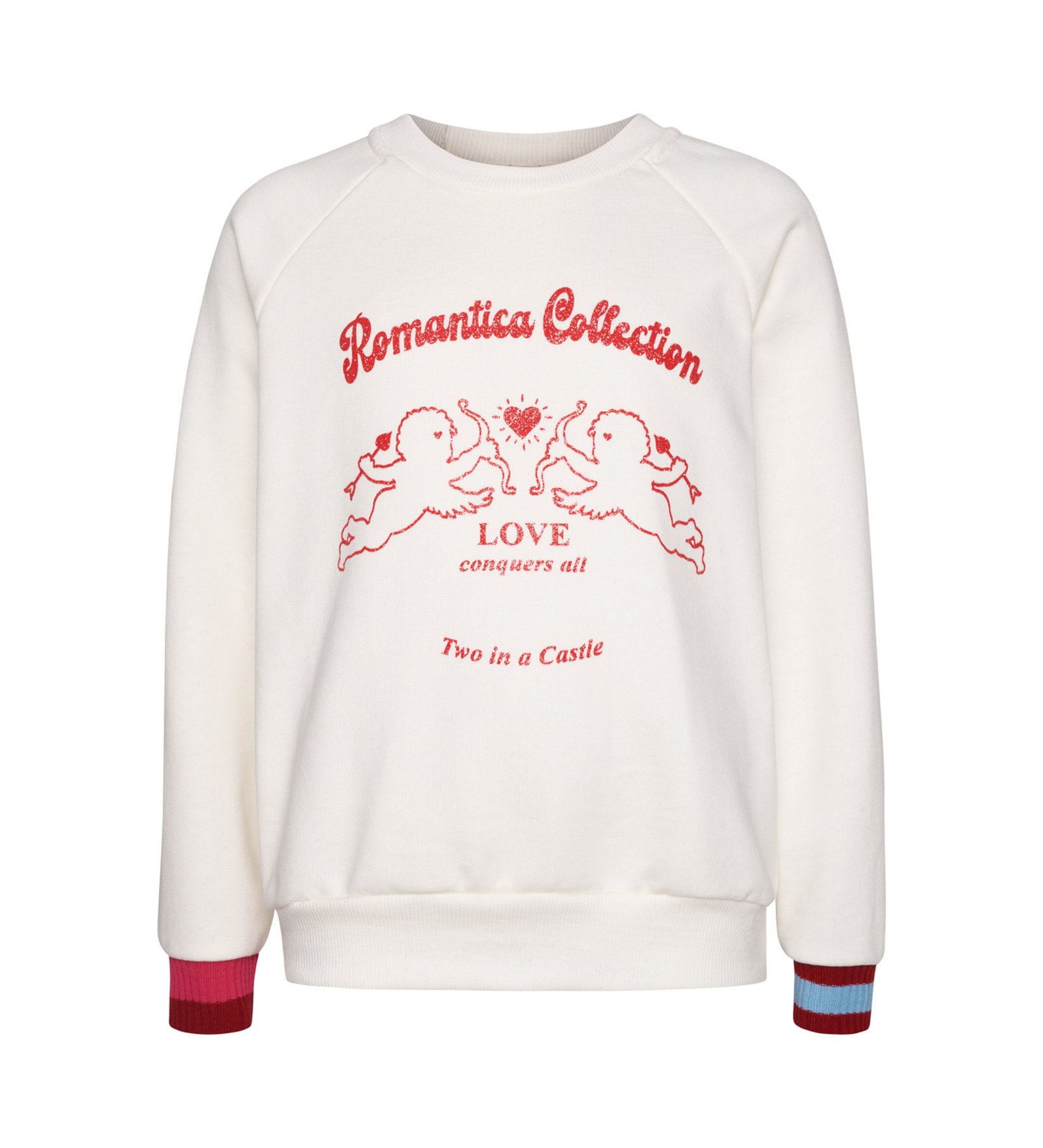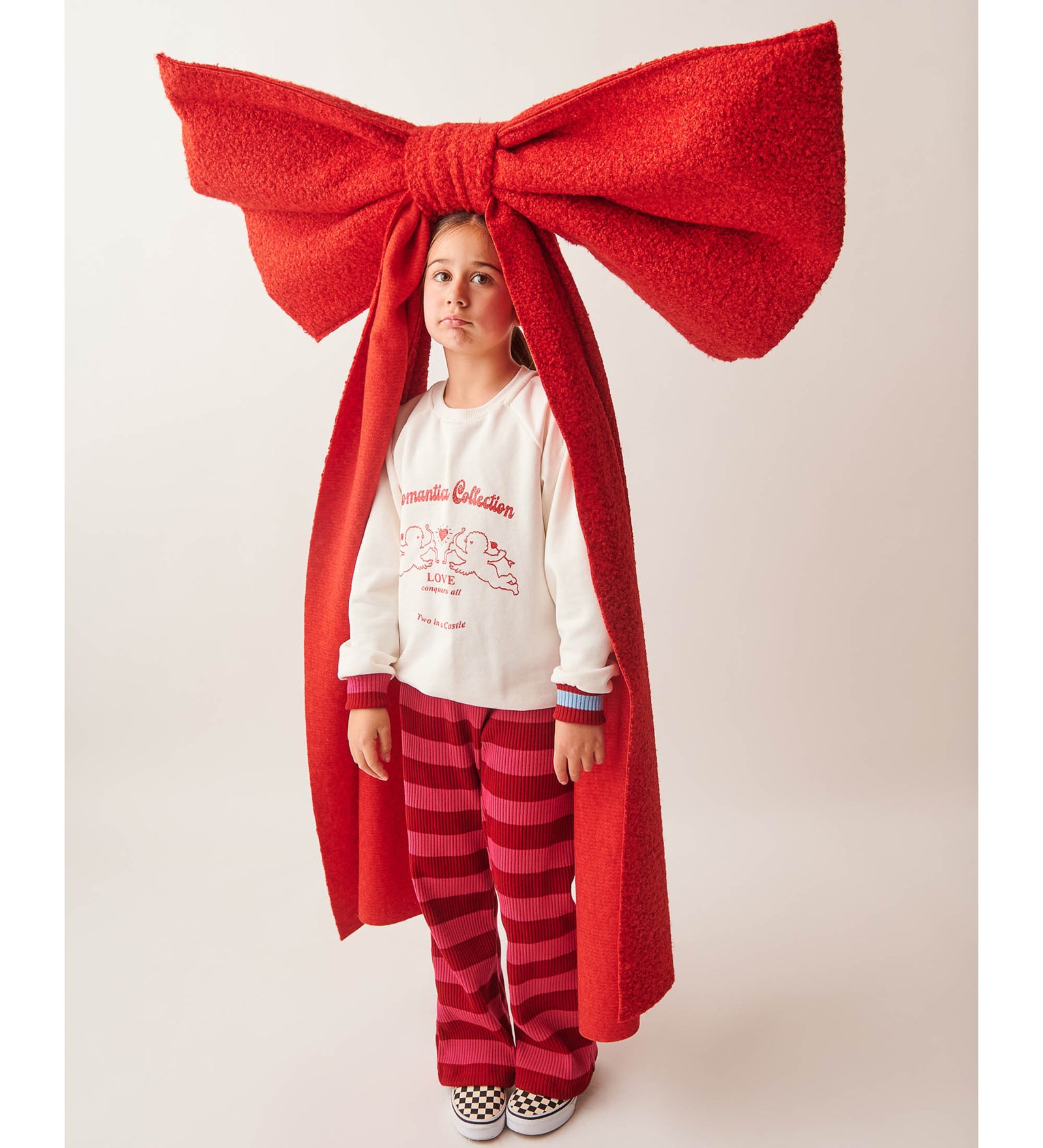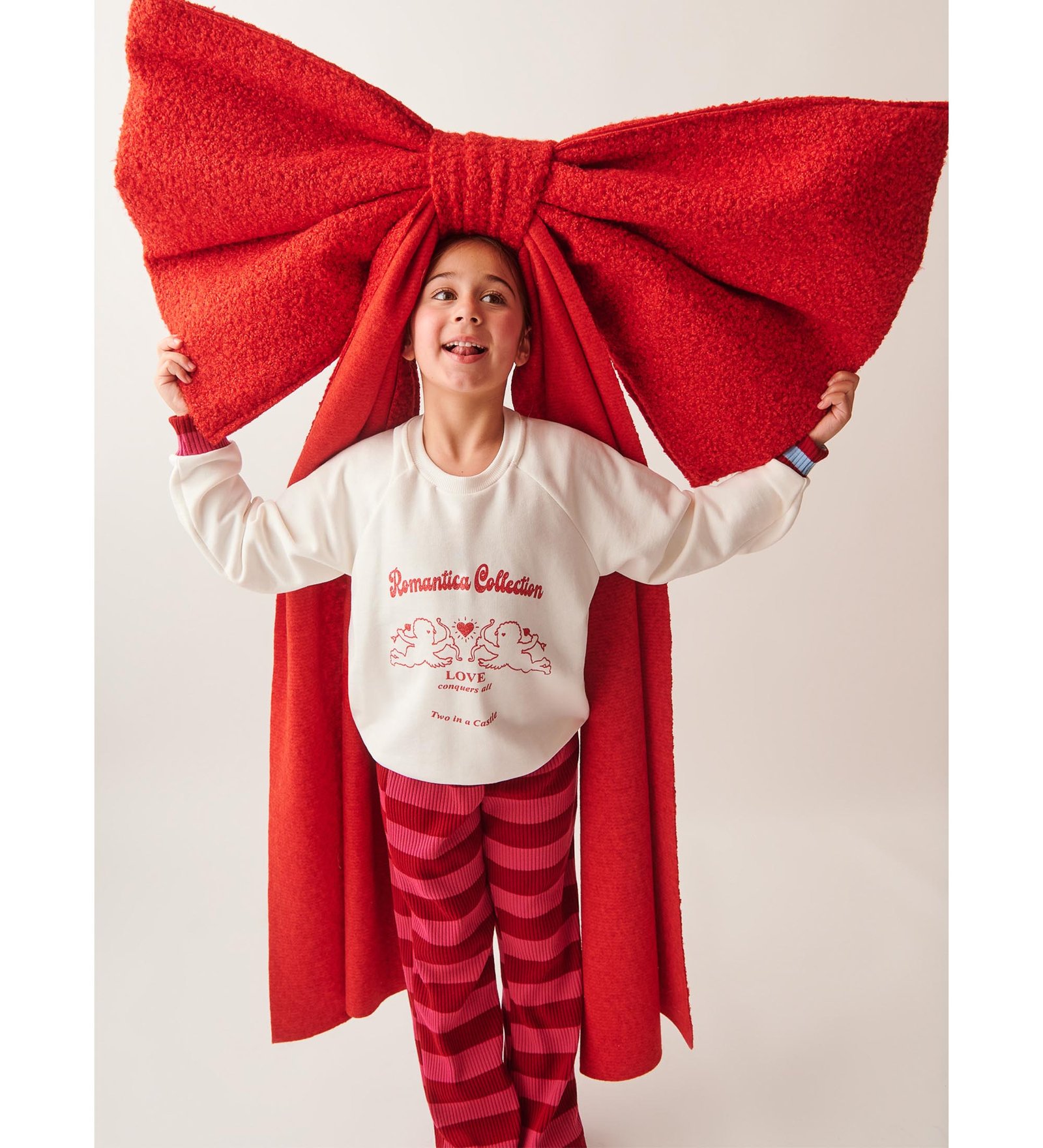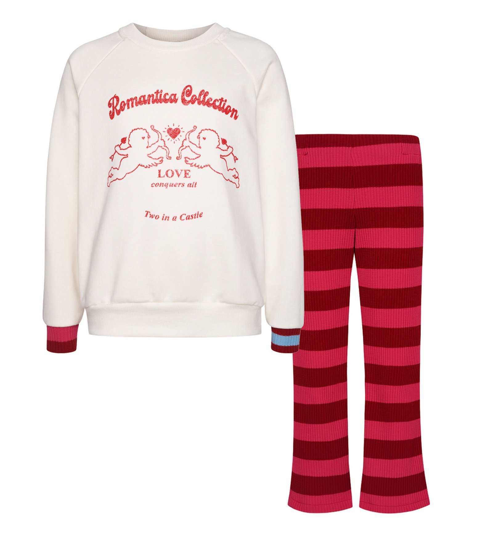 “Two in a Castle” Σετ φούτερ με ριγέ παντελόνα. Το φούτερ είναι λευκό από τη συλλογή “Romantica Collection” και η παντελόνα ριγέ μπορντό με φουξ.