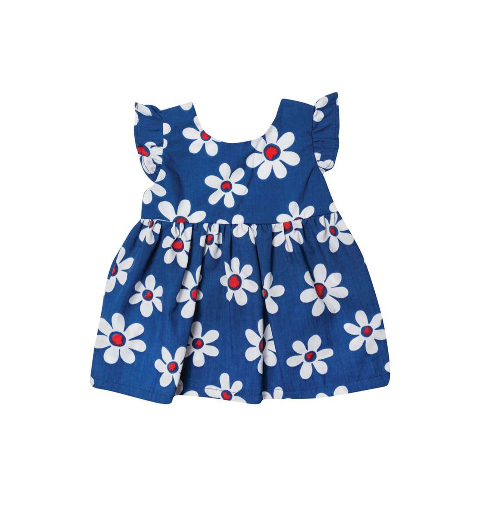 “SRFN” Καλοκαιρινό βαμβακερό φόρεμα σε μπλε απόχρωση με λευκές μαργαρίτες.